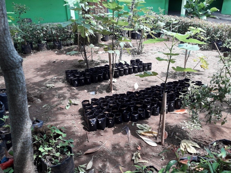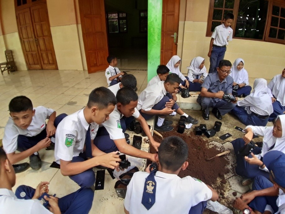 membersihkan kebun, sebagai aktivitas menyayangi tumbuhan dan lingkungan sekitar.